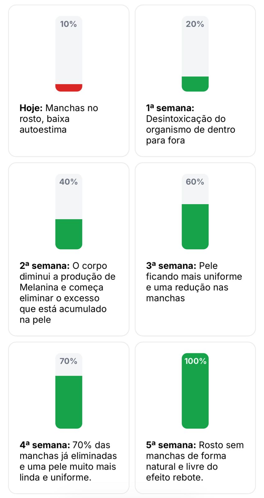 No final você recebe um diagnóstico personalizado para eliminar as manchas em até 30 dias de forma natural e sem efeito rebote.